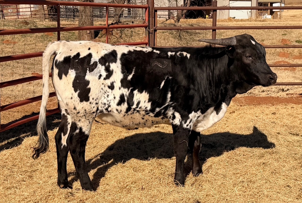 Fast Coach is a Hard & Fast daughter out of one of our most proven producers, and she’s already showing why this line works. She’s a half sister to Raghild—who dominated futurity classes before heading to Brazil, where she’s now raising exceptional calves—and this heifer carries that same promise. We’re thrilled about Fast Coach and the direction she’s headed. That horn set is fantastic, her conformation is clean and correct, and her true black‑and‑white color is absolutely striking. She is PV'd and DNA'd Trust the Genetics!