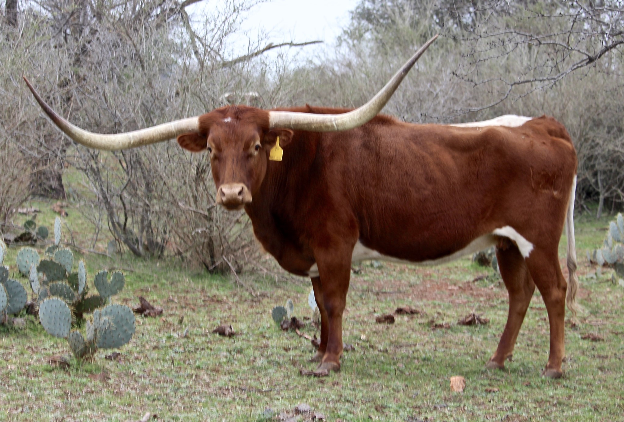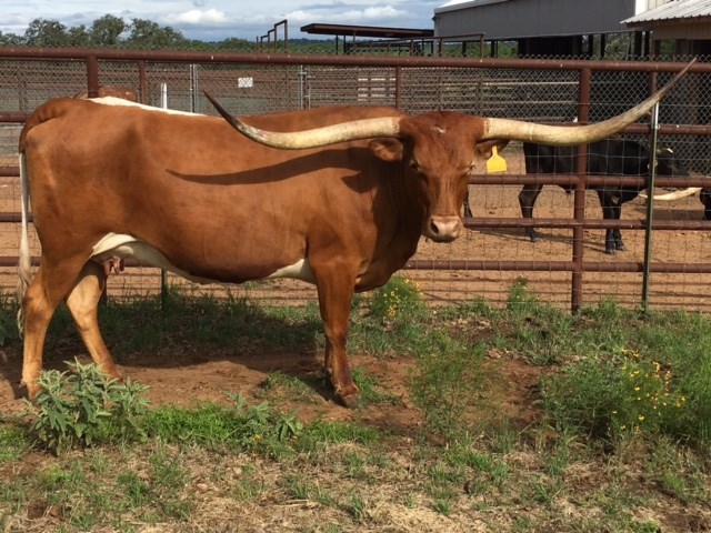 Brandy is one of the sweetest in the pasture. She is the one everyone notices. Cool horn set and will eat treats out of your hand! We are looking forward to her 2024 calf by Cowboy's Casanova Pride