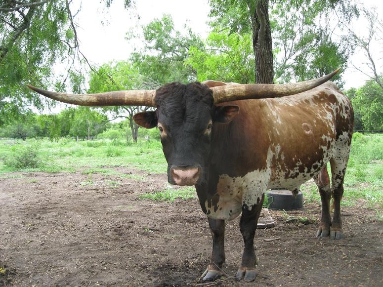 Sentinel 9 was purchased from Joe Valentine in 2008 and sired most of our 2009 calf crop of which, producing COLOR he does well. His LATERAL HORNS ARE BOUND TO INFLUECE horn growth in a valuable direction.--- strong PEDIGREE -- SON OF JM SUE WITH VJ TOMMIE AND J.R. J-MAN, GRAND SIRES, GUNMAN BEING J-MANS SIRE.