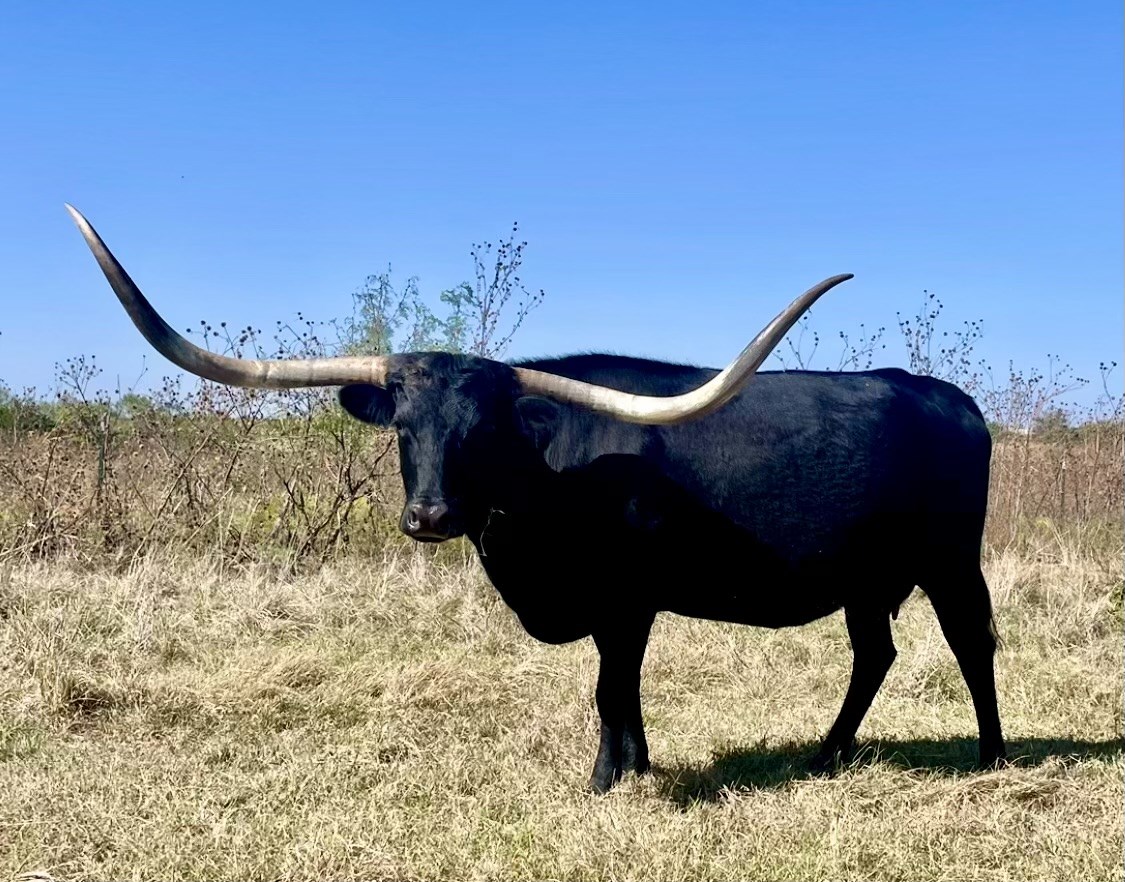 A big well built cow with an easy going temperment. She was already bred when we purchased her and there is some confusion on who the sire is on her bull calf that she threw in 2025. Really looking forward to see what her calf will look like out of Batman this year.
